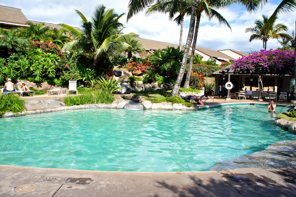 Overlooking the waterfall pool from the back lanai, close to the tennis courts, BBQ, convenient parking space, with NO steps between the space and the condo door. Quiet location, no street noise from South Kihei Road.